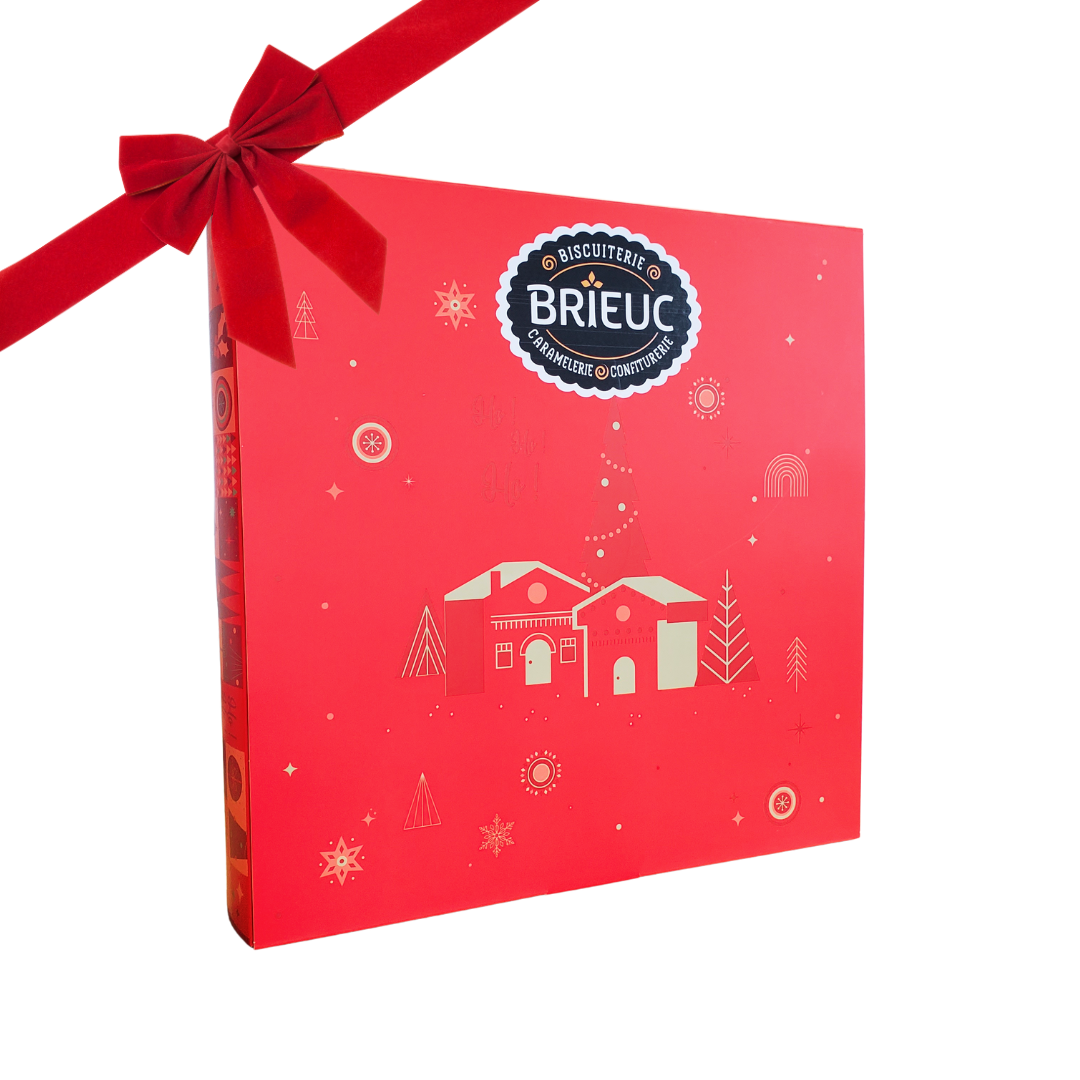 Edition limitée garnie d'une sélection de nos spécialités et gourmandises : Caramel au beurre salé, Meringue, Bonbons, Palets bretons, Galettes bretonnes, Cookie et plein d'autres surprises gourmandes pour attendre Noël !